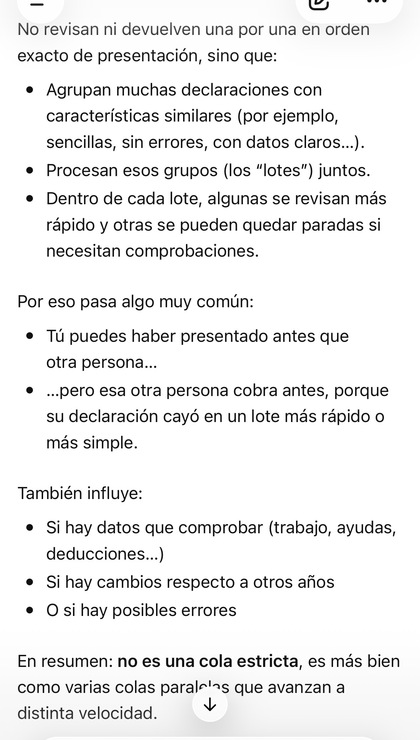 Por lo que veo da igual presentarla antes que después, se cobra indistintamente. Veo gente que acaba d e presentar y ya conforme , personas del primer día solo con borrador confirmado y esperando.. es una vergüenza no tener claros los criterios del orden… que menos que ir en orden de presentación, como en cualquier solicitud en la administración. En fin, a ver si se mueven algo más