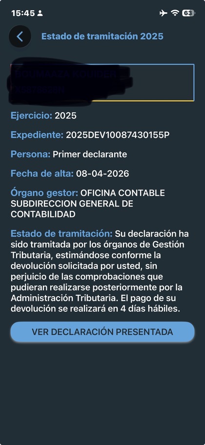 2. Cuando diga más adelante "Estimándose conforme la devolución solicitada" quiere decir que cobras íntegro . Si te fueran a descontar algo del aplazamiento, el mensaje pondría "devolución minorada por compensación" o "parcial". Al decir "conforme", te pagan todo lo que pediste.