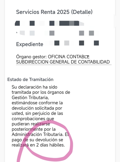 Buenas borrador confirmado ayer día 8/4 Hoy conforme y tramitado... Oficina indalecio Prieto Sevilla. 1800 a devolver haber si este año tengo más suerte porque el pasado me pagaron en octubre