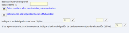 El titular eres tú: tú eres quien, si cumples los requisitos, tiene derecho a la deducción. Si has estado trabajando todo el año, obvia lo de "pensionistas y desempleados", ve a la pantalla de cotizaciones a Seguridad Social y pon tus cotizaciones. De nuevo, de quien hay que indicar la obligación, o no, de declarar es sobre ti.