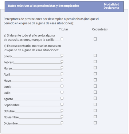 Buenas tardes, tengo dudas de como debo incluir a mi padre con una incapacidad permanente absoluta reconocida desde agosto 2025 (discapacidad del 33%) como nadie mas tiene derecho a la aplicación de la deducción (mi madre no es casada, ni pareja de hecho con mi padre y mi hermana de 18 años no hace la declaración, no trabajo) tengo derecho a la deduccion. Las rentas anuales de mi padre padre fueron de 8.446€ menos 2.000 de gastos deducibles = 6446€ así que cumplo con el requisito para incluirlo. La duda para ser mas preciso son en los siguientes apartados: Entiendo que si se ha trabajado todo el año 2025 obviar "datos relativos a los pensionistas y desempleados" pero en el año mi situación laboral fue la siguiente: • Enero - autónomo • Febrero-marzo y abril - No trabaje - pero no tuve paro • Mayo - noviembre -- trabaje por cuenta ajena • Junio - autónomo • Noviembre - Diciembre - autónomo