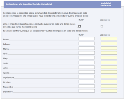 Debería rellenar este apartado? Entiendo que en el apartado "Cotizaciones a la Seguridad Social o Mutualista" debo indicar las cotizaciones, donde podría consultar estos datos? De antemano, muchas gracias.
