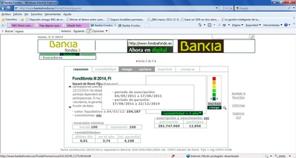 Al grano, revisando las cuentas de mi madre, ella que se creía que tenía un depósito, observo que lo que tiene es un fondo en cajamadrid (Fondlibreta III 2014 FI), por lo que mis dudas sobre lo que he podido leer y sobre todo entender, es que si aguanta el fondo hasta el 2014 si está garantizado el capital, pero si dispone de él antes puede sufrir perdidas (no logro ver la cotización actual). A mi madre le ingresan una cuantía trimestralmente, que me imagino que es el 3,6 % que anuncian, pero no se si estos importes se deducen al final del capital invertido.