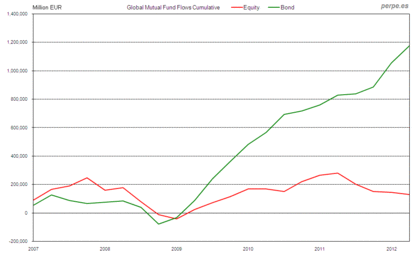 Abajo los gráficos bien significativos que indican la evolución del patrimonio de los fondos BONOS-RV en EEUU y otro gráfico con el mismo concepto a nivel GLOBAL.