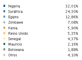 * "Una encuesta realizada por The Economist Intelligence Unit revela que más del 50% de los inversores institucionales, incluyendo fondos de inversión y bancos privados, consideran Nigeria como el país más atractivo de Africa para invertir en los próximos 10 años: la política es relativamente estable, y el consumo ya representa más del 80% del Producto Interior Bruto (es el mayor consumidor de cerveza del Mundo, y Lagos, la capital de Nigeria, ya es un mercado mayor que Bombay, y el nivel de consumo familiar medio supera cifras de India y de Rusia). Es el país más poblado de Africa (unos 160 millones de personas, de los que alrededor del 65% son menores de 25 años), el mayor exportador de petróleo del continente y tiene sus mayores reservas de gas natural".
