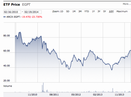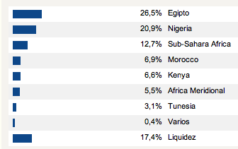 MARKET VECTORS EGYPT INDEX ETF (ISIN: US57061R5697) invierte su patrimonio en acciones de empresas que tengan su sede ó que generen la mayor parte de sus ingresos en Egipto.