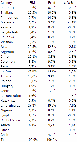 *** Excluyo los fondos de inversión Franklin Middle East and North Africa y Schroder Frontier Markets Equity, dado que están excesivamente orientados a países de Oriente Medio, donde invierten respectivamente el 79.09% y el 60.60% de su patrimonio, así como los fondos con exposición a los países emergentes tradicionales. No obstante, si te interesa una exposición a Oriente Medio lo podemos mirar.