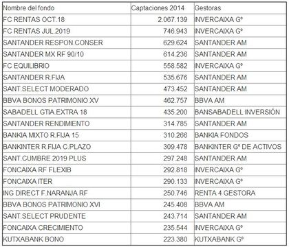 Cabe destacar que las mayores captaciones de los fondos en el primer cuatrimestre del año se han registrado en los fondos de rentabilidad objetivo (5102 millones de euros). Seguidamente, encontramos las mayores captaciones en fondos de renta fija a largo plazo (3068 millones), fondos de renta fija mixta euro (2532 millones) y fondos de renta fija a corto plazo (1984 millones).