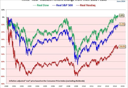 Fíjate la evolución de rentabilidad real (ajustando la inflación) en los últimos 14 años de los 3 indices de EEUU.
