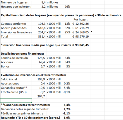#881 Re: ¿Cuál es vuestro porcentaje de rentabilidad en los últimos 12 meses? Ver mensaje de Anton74 Anton74 Seguir 19/11/25 16:26 Buenas, actualizo datos de rentabilidad minorista del banco central holandés. A 30 de septiembre, tras un muy buen tercer trimestre, el inversor minorista promedio llevaba un respetable 6,9% de rentabilidad en el año en su cartera de inversión. Saludos Responder