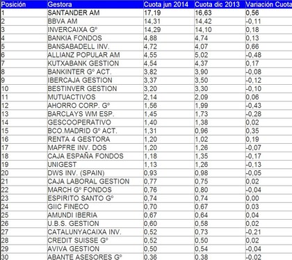 El sector de fondos de inversión ha crecido en el primer semestre de 2014. A continuación, podemos observar cuáles han sido las gestoras que cuentan con más cuota de mercado actualmente.
