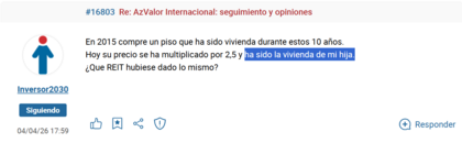 Yo no diversifico en inmobiliario, básicamente porque no tengo pasta para comprar pisos en las 50 ciudades más importantes del mundo, jejeje Eso sí sería diversificar. Y para eso hay REITS. Comprar varios pisos en tu ciudad no es diversificar. Eso es comprar lo que conoces. De hecho, invertir en inmobiliario como lo hace el ciudadano medio español (que dedica más del 50% de su patrimonio en comprar unos pocos inmuebles) es el paradigma de la concentración.