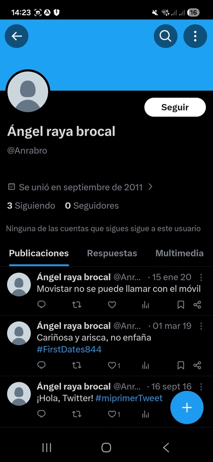 Jamás haría eso que afirmas. Pero no tengo problema en comentar datos publicados en internet, en teoría, por el propio interesado. Presuntamente él mismo asocia en Twitter su nick a ese nombre. Por tanto, no desvelo nada. https://x.com/Anrabro Y no me digas que no es gracioso que un técnico de Telefónica tenga 1 único tweet funcional que sea para avisar a Telefónica que no funciona, ja, ja.