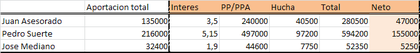 - CASO A). Juan Asesorado, de 40 años. Tiene unos ingresos que conllevan una base liquidable de 26200€ anuales. Es bastante ahorrador y es capaz de aportar 5000€ anuales a su plan de pensiones. Esta aportación le supone un ahorro en IRPF de 1500€ aprox., que también va guardando. Invierte en un buen plan, con rentabilidad anual del 3.5% en los últimos 10 años (casi duplica la rentabilidad media, su plan está entre el 8% de los mejores (43 de 564)).