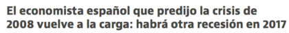El caso es que desde que estoy de vacaciones, en vez de relajarme, no dejo de darle vueltas. Trabajo, pero para vivir, y todo mi patrimonio son los 100.000€ de ésos dos fondos. Y me preocupa su evolución con el Brexit y las elecciones del 26J. Además, ahora resulta que oigo decir al financiero Juan Luis Crespo, el único economista español que predijo la crisis de 2008, que la economía mundial volverá a entrar en recesión en 2017.