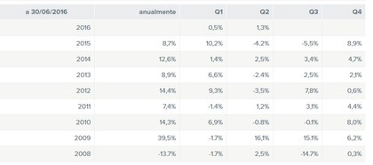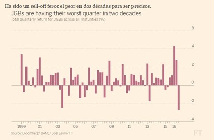 La venta ha sido general de toda la deuda no sólo el bono japonés ,el bund ya entró en terreno positivo El bono US por encima de 1.70% aunque sigue con un -22% YTD Si alcanzara niveles de dici-enero los bonistas tendrían pérdidas considerables Ayer un emisor como España de calidad crediticia muy lejos de AAA coloca 4.500 millones a inversores dispuestos a pagar 0,197% por comprar esos papeles, así da gusto endeudarse y no sólo es la deuda pública cada vez más deuda corporativa viene entrando en territorio negativo, veremos en qué termina todo esto Y si los bancos q son los grandes tenedores de deuda pública en vez de ir a las emisiones del Estado lo dejaran en tesoreria del BCE tendrían que pagar 0,40%, por lo tanto aún ahorran dinero Si estallará o no... ni idea,pero la situación es la que es. " Una crisis la próxima semana? me viene mal ,tengo la agenda completa " H. Kissinger y eso parece pensar tb el mercado Respecto al fondo en cuestión la verdad sea dicha se me había pasado totalmente pero quedan pocos días para su cierre,lo llevan con bastante sigilo supongo que no quieren entradas fuertes de dinero a última hora https://www.bondvigilantes.com/blog/2016/09/13/sub-zero-yields-advantages-bonds- cash-gone/ Multa para Portugal Telecon de $1.25 mll por no informar a los inversores sobre riesgo crediticio... https://www.sec.gov/litigation/admin/2016/34-78824.pdf Fidelity ,anexo con nuevo cuadro de comisiones https://www.fondosfidelity.es/eventos/corporate-actions/2016-09-12-cambios-importantes-en-la-estructura-de-comisiones-de-las-clases-de-acciones-%E2%80%93-fidelity-funds-sicav-1473736796894