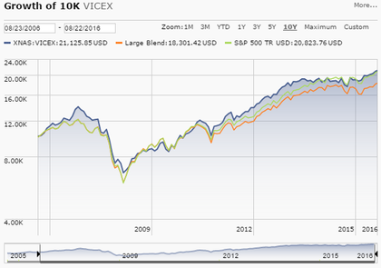 VICEX cuenta con una inversión mínima de 2.000 dólares y aplica unas comisiones del 1,85%. Además, cobra una tasa del 1% en concepto de reembolso si se retiran los activos antes de 60 días, para evitar la especulación.