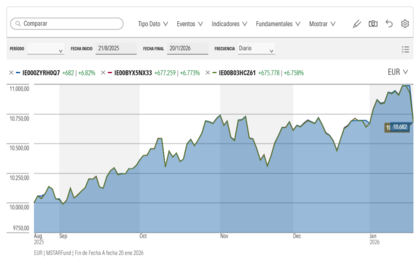 Si hubiese invertido 10000€ el 21/8/25, la rentabilidad en 5 meses, el 20/1/26 sería: