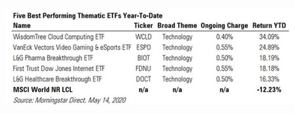 Aquí van una muestra de los ETFs que mejor se están comportando de los temáticos. Hay ETFs referenciados a volatilidad que han tenido un comportamiento incluso mejor que estos. Todo lo tecnólogico sigue dominando el panorama y el negocio en la nube.