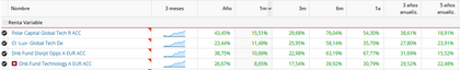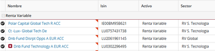 Yo hace algun tiempo que llevo Polar Tecnogia, y el DNB Opportunities, no van nada mal, sobre todo el de DNB