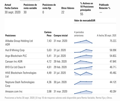 Cartera bastante peculiar y expuesta a bitcoin, mirad la misma según Morningstar y según el informe en la CNMV