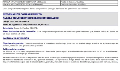 Viendo un poco los rankings de rentabilidad a un año me ha sorprendido encontrar este fondo Alcalá Multigestión Oricalco FI. Me he puesto a investigar un poco porque me ha causado mucha curiosidad su cartera y era bastante desconocido para mí.