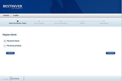 He curioseado por la web de Bestinver y si elegimos la opción [OPERATIVA] -> No soy cliente nos aparece un formulario: