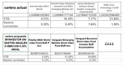 Los dos fondos (Janus y dnb) son muy conocidos pero son activos, que a largo plazo probablemente no vatan al índice, pero claaaro, Openbank no tiene small caps, y sobre el dnb es bastante bueno, igual que el fidelity activo de tecnología, que precisamente elegí dnb porque antes tenía el sp500 y se solapaba con el Word, entonces como yo quiero algo de tecnología porque apuesto por ello, elegí este, claro, investigue antes, como el mensaje que puse largo sobre fondos.