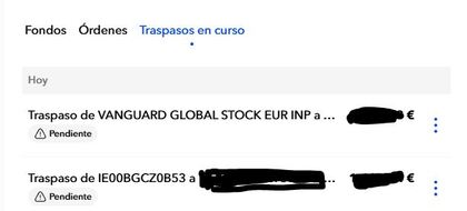 Parece ser que el problema está en que los fondos que quiero traspasar (los de Indexa) My Investor no los comercializa, entonces al seleccionarlo aunque te deja meterlo no lo identifica. He hablado con Indexa y me dicen que por su parte está todo correcto (yo creo que tienen razón), lo que quiero hacer es un traspaso de fondo no un cambio de comercializadora, es decir, tiene que cancelar las posiciones del fondo de Indexa y constituir el fondo comercializado por My Investor pero debe ser que es chino para ellos al menos para las operacionas y como tal, no pueden hacer nada y si los que tienen que hacerlo no lo hacen pues... nunca va a funcionar...