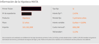 Y la otra es la de ING que tendría ya aprobada: El importe que seguiría hipotecando es el mismo, los 161262 que son los que debo, y los años que me quedan con pibank que serían 32.