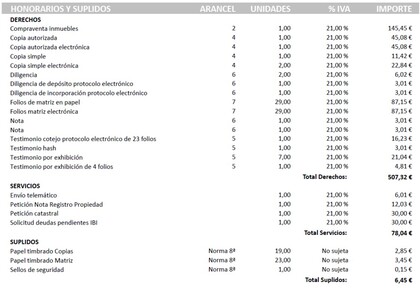 Factura notario excesiva
