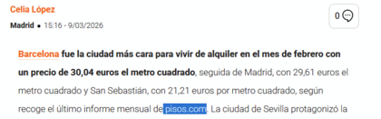 El alquiler en Barcelona rompe la barrera de los 30 euros por metro cuadrado y se corona como la ciudad más cara