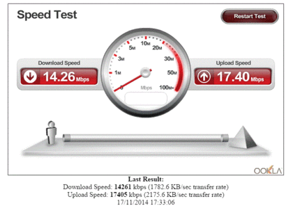 El exceso sobre este tiempo lo facturan caro y cuando he llamado desde el fijo al 112 siempre da tono de estar comunicando (tendría que llamar desde el móvil). Aquí está el resultado del test de velocidad con el ordenador cerca del router: