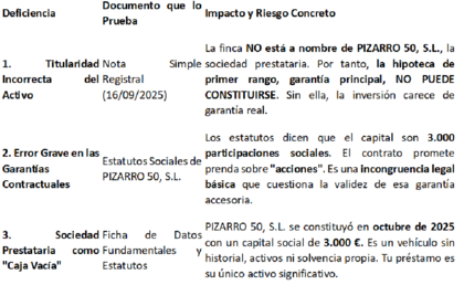 Consecuencia: El colchón del 35% LTV es ilusorio en escenarios adversos.
