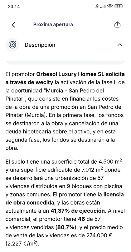 Hola @marilo123 Gracias por contestar. Pero, tienen el 80% de las viviendas vendidas. ¿Eso puede dar algo de tranquilidad? ¿O igual pueden dar algún susto al final del proyecto?
