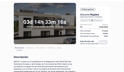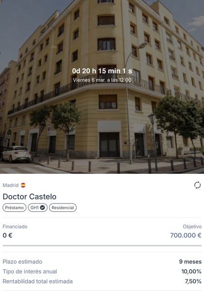 La rentabilidad ofrecida (7,50% en 9 meses) es atractiva en el contexto actual de tipos de interés y se sitúa en la media de operaciones de perfil similar en crowdfunding inmobiliario.