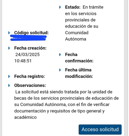 He solicitado Beca MEC para mi hijo que está estudiando primero de bachiller, en agosto nos llegó un email donde nos confirmaba que cumplíamos con los requisitos económicos, ahora en estado me aparece presentada y en observaciones su solicitud está a disposición de su Unidad de Becas para ser tramitada, es correcto? Todo bien?