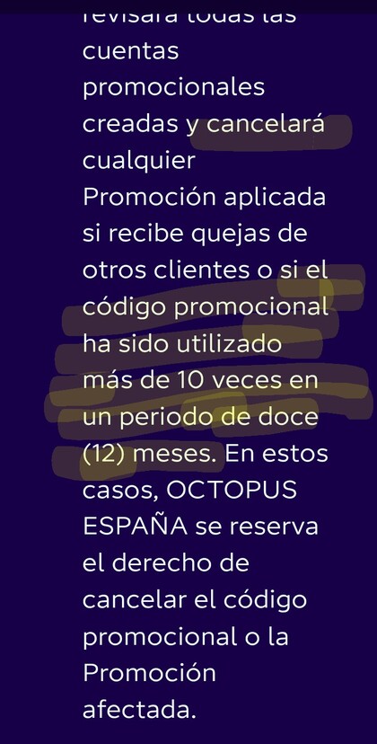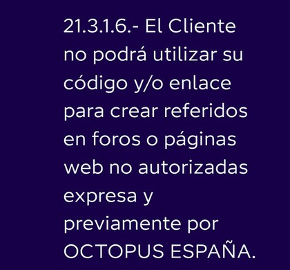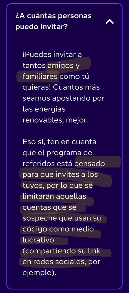 - Si alguien sabe que su código ha sido usado ya 10 veces en menos de 12 meses (nota: creo que cuando alguien usa tu enlace y en efecto completa la contratación, la Empresa avisa al "padrino" por e-mail, y creo que también hay un contador en el área de cliente), debería retirarse de la lista, al menos hasta que se complete ese periodo de 12 meses. Esto es básicamente por bien propio, porque el posible afectado sería él mismo.