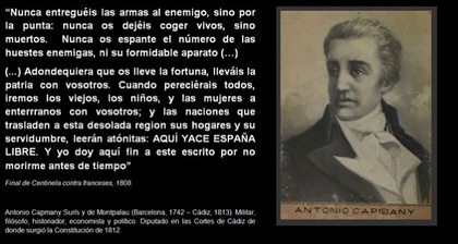 El catalán Antonio Capmany en 1808 incitando a los españoles a morir luchando contra Napoleón. ¿Capmany? ¿quién?