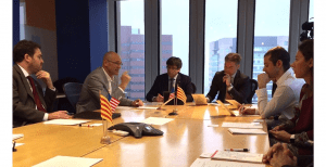 Abans el Bismarck de Girona havia visitat Boston, donde se reunió con “emprendedores del Cambridge Innovation Centre en el ámbito biotech” (sic). Miren otra vez la foto: una sala de reuniones cutre, 7 personas incluidos ellos mismos, nadie sabe con quién están reunidos porque no facilitan nombres de los supuestos “emprendedores del ámbito biotech“: