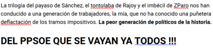 Y para lo de “social”, nada como su alumno aventajado de Los Sanchézano: la luz más cara de la historia, la cesta de la compra más cara de la historia, los pisos más caros de la historia y, cómo no, los impuestos más altos de la historia.