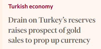 Miedo a que Turquía tenga que vender sus reservas de oro para sostener su moneda.