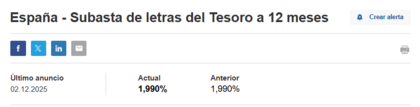 #14796 Re: Dudas compra Letras del tesoro - Letras del Tesoro Ojimenez Seguir 02/12/25 13:25 el marginal subio 2,004% vs 2,003 % pero el tipo medio no cambio respecto a la subasta anterior --- 1 Responder