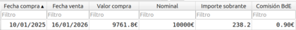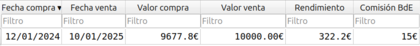 En el caso de que al vencimiento se hubiese decidido reinvertir, en la subasta de 07/01/2025, entonces tendríamos este resultado de la reinversión.