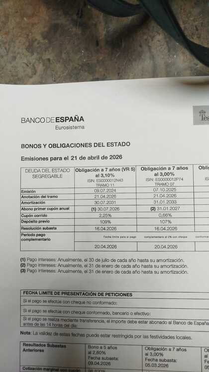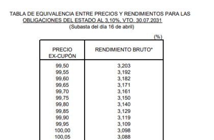 Emisión 3,10% Vto. 30/07/31 --> tir 3%