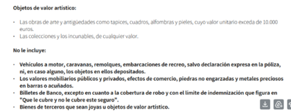 Por un cambio de domicilio, ciertos enseres de valor van a la nueva casa, la póliza está en AXA y según su condicionado se indica: