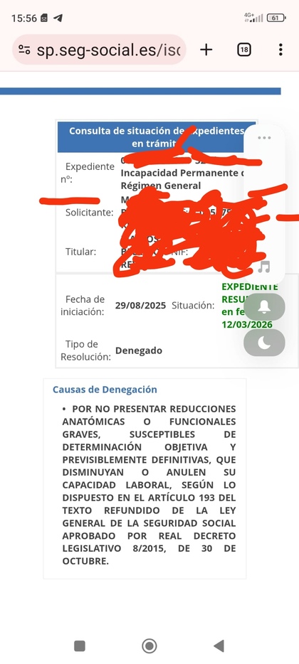 A ti cuando te pasó, estabas en IT (dentro de los primeros 365 días) o ya habías pasado los 545 días? Yo es que me encuentro ya fuera de los 545 días, entonces, técnicamente estoy en "prolongación de efectos de la IT" mientras se resuelve la Incapacidad Permanente. No sé si es diferente, ya que mi contrato de trabajo está "suspendido" o se puede hacer como tú dices igualmente?