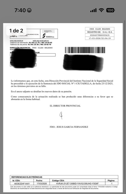 Lo del INSS si que es de juzgado de guardia, es reflejo de los gobernantes corruptos de este pais. Ánimo que todo va a salir bien.