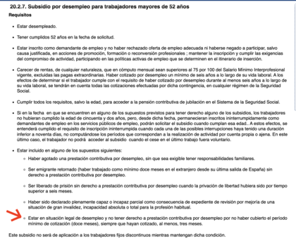 Cuando leo el artículo 274 de la SS donde estipula este subsidio, veo que el no haber cumplido los 52 cuando acabé la prestación no debería suponer falta en los requisitos, pero no se si lo estoy interpretando bien...