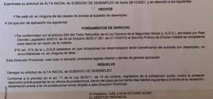 Es la coletilla más habitual que pone siempre el SEPE cuando deniega.